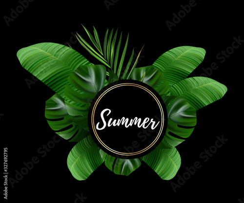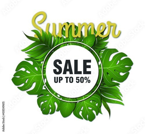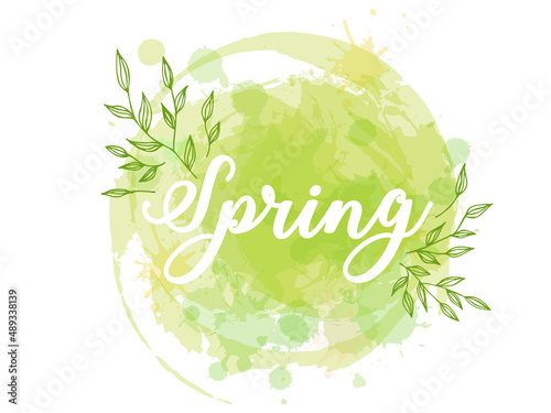 Green foliage decorative frame Spring sale creative hand lettering typography, vector illustration in paper art craft style. Seasonal spring sale promotion banner, poster template.