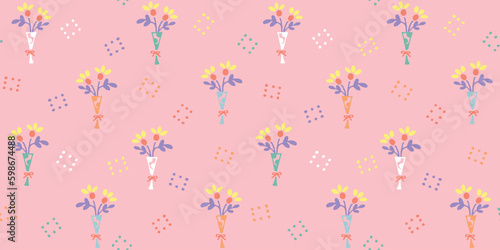 Spring animals seamless pattern set, vector illustration. Spring childish background, wallpaper with cute cats and forest animals, flowers, birds.