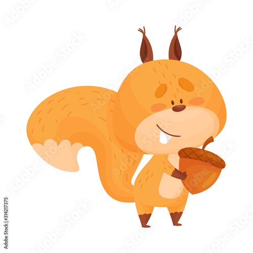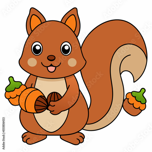 Squirrel vector. Cute forest animal cartoon character illustration. Chipmunk with autumn nuts harvest icon isolated on white background