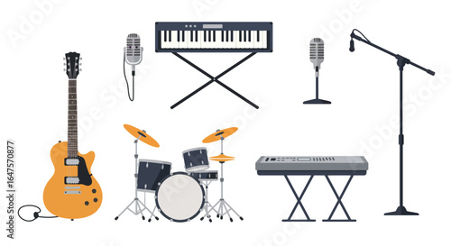 Stage spotlight set, flat vector isolated illustration. Professional lighting equipment for theater performances, photo studio, movie production, concerts, show etc.