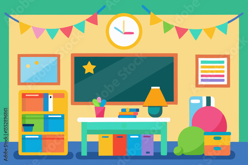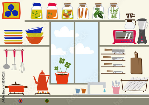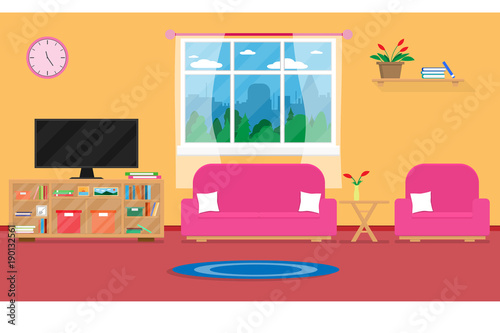 Home interior for stay home and do yoga theme poster, flyer, banner, vector flat style design illustration. Online yoga, stay at home in quarantine. Coronavirus COVID-19 disease spread prevention.