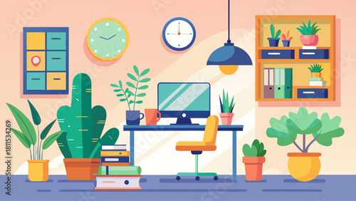 Stay at home concept vector illustration. Man listen music on vinyl recorder. Woman doing yoga and meditation at home. Girl read and relax on sofa. Mindfulness, wellbeing and relax.