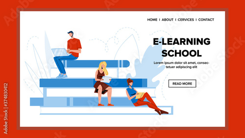Stay home vector website template, landing page design for website and mobile site development. Man working on laptop sitting on sofa Self isolation remote work from home during coronavirus quarantine