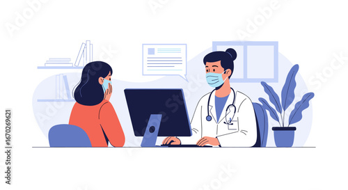 Stewardess and passenger woman in face mask for protection vector icon isolated background. Fight rules concept.