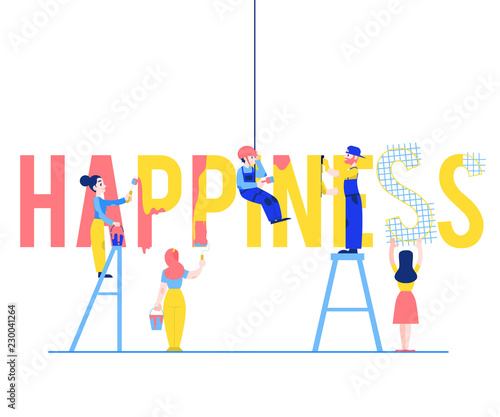 Stock exchange, vector flat style design illustration. Candlestick chart, tiny characters brokers traders sell or buy shares using laptops. Stock market concept for web banner, website page etc.