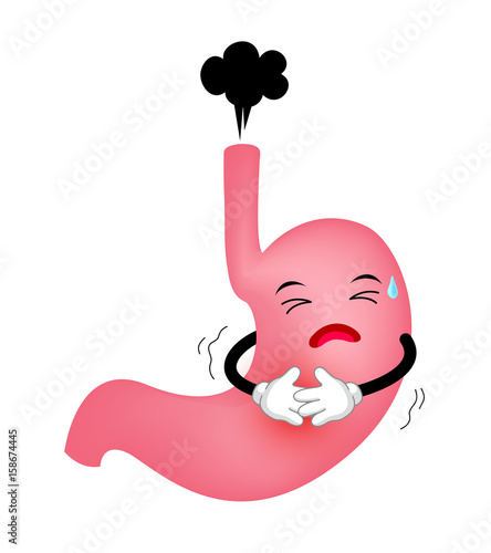 Stomach vomit nausea vector. Stomachache, digestive reflux and pain icon. Cute internal human digestive organ character feeling bad illustration isolated on white background