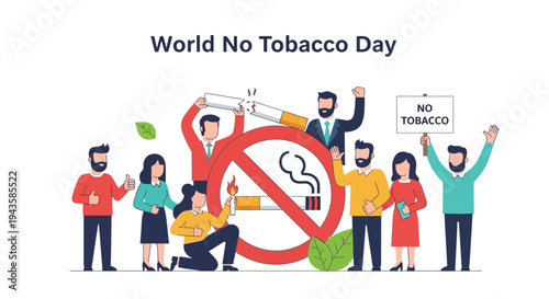 Stop pollution vector concept illustration. People with placards, slogans, banners and megaphone protesting against air and water pollution by industrial plants smog and waste discharged into rivers.