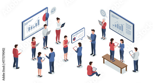 Stop violence sign and group of activists, protesters with placards, flags, flat vector isometric illustration. Stop violence protest.