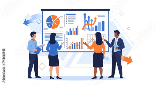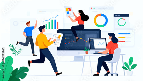 Stop violence sign and group of activists, protesters with placards, flags, flat vector isometric illustration. Stop violence protest.
