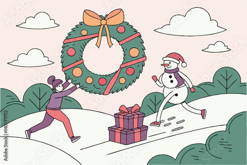 Miniature people male and female characters making delicious ice cream with strawberry and chocolate, vector flat illustration. Ice cream production and selling concept for poster, banner etc.