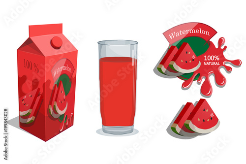 Strawberry juice package mockup set. Vector realistic illustration of natural fruit juice in glass, plastic bottle and carton pack with liquid splash, ripe fresh berries and leaves.