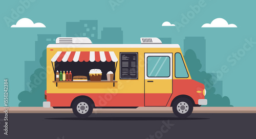 Street burger vector website template, web page and landing page design for website and mobile site development. Fast food truck with big burger on roof, street food van.