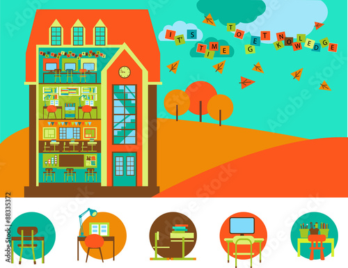 Street coffee and coffee to go concept vector illustration in flat style. People standing around the table, talking to each other and drinking coffee.