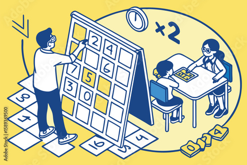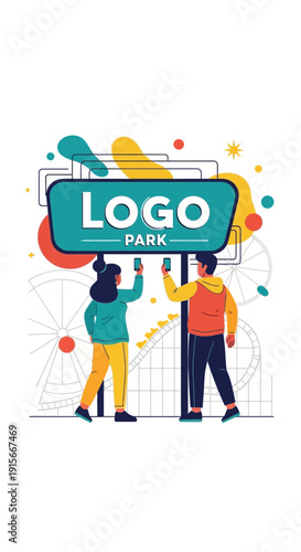Street coffee shop, cafe with barista making coffee to go for man and visitors sitting at tables, vector flat illustration. Outdoor cafeteria, restaurant terrace concept for web banner, website page.