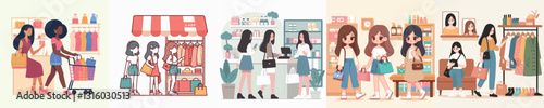 Street food festival scene set with happy people characters. Holiday meal preparation and sale, festive dinner eating, truck service providing vector illustration