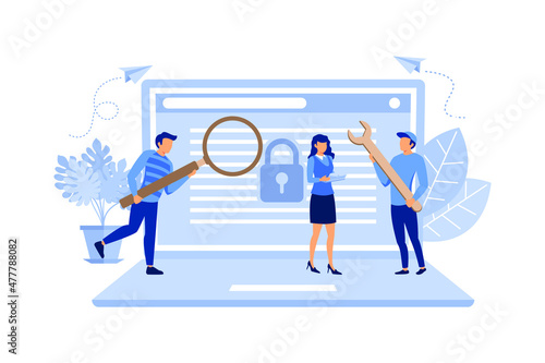 Street hooligans, graffiti painters wearing hoodies and face mask damaging public building, flat vector illustration. Street vandals painting brick wall with paint spray. Vandalism.