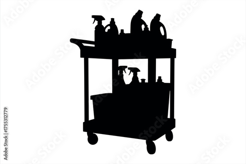 Vector illustration of street food cart and salesman holding paper bag with hot dog and soft drink. Street people flat style design element, icon isolated on white background.