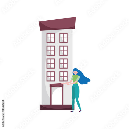 Vector illustration of woman going shopping at store. Street traffic and shopping concept design element in flat style.