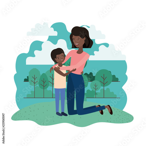 Stressed mom walking in the street with her naughty kid, flat vector illustration. Parental stress, parent and child relationship.
