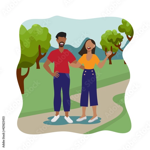Stressed mom walking in the street with her naughty kid, flat vector illustration. Parental stress, parent and child relationship.