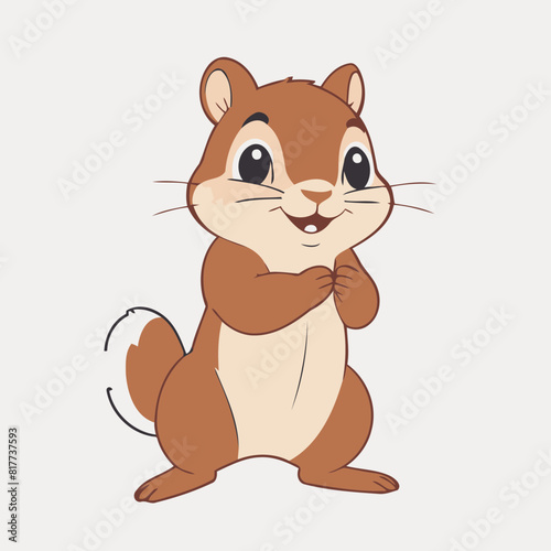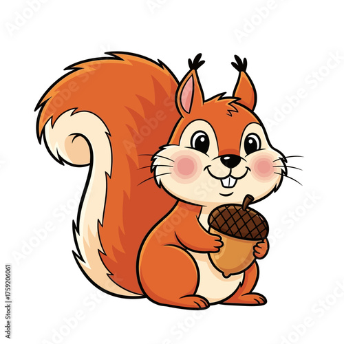 Small strong squirrel and acorn heap vector. Fur rodent showing power muscle gesture sitting near organic ripe oak seeds pile isolated on white background