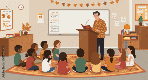 Students at lecture in university vector scene. College classroom with speaker and audience illustration. Education and cognition process concept