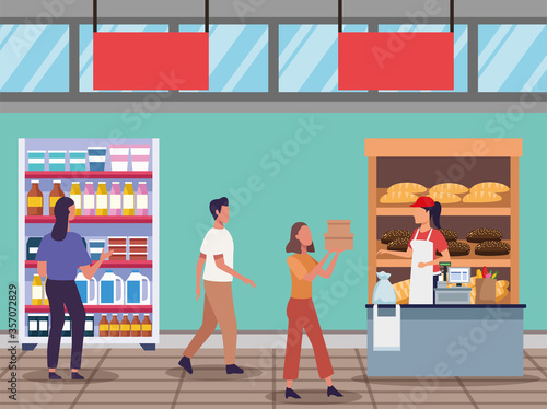 Students, schoolchildren, kids with parents in school hall or corridor, flat vector illustration. School break, education concept.