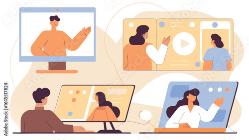 Students studying in auditorium at college or university, doing homework, chatting during break time scene set. Back to learning and education process at lectures or seminars vector illustration