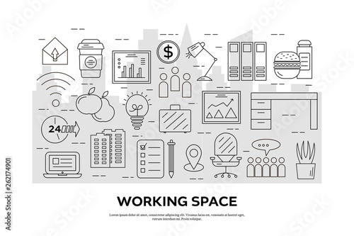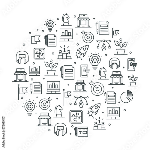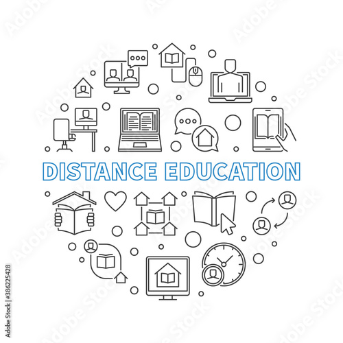 Studies concept vector illustration. Modern thin line art flat style design element in the shape of cloud with educational symbols, icons for website banners and printed materials.
