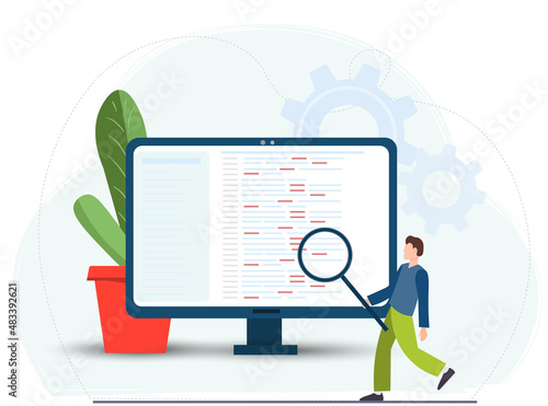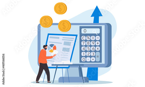 Study concept vector flat style design illustration. Huge planet earth globe and micro characters students carrying pile of books, calculator. Education course, study abroad.