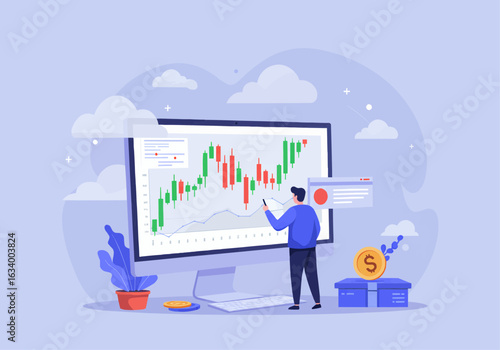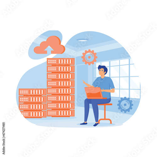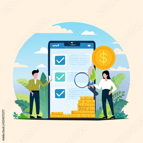 Study concept vector flat style design illustration. Huge planet earth globe and micro characters students carrying pile of books, calculator. Education course, study abroad.