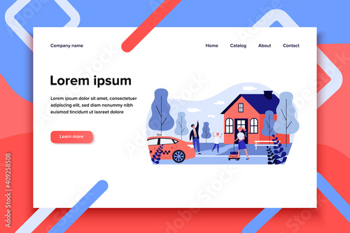 Study together landing page design, website banner template set, flat vector illustration. Father and mother helping their son to do homework. Happy multicultural family relationship, parenting.