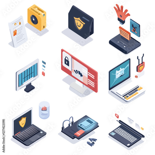 Subway icon set. Vector flat isometric illustration of metro underground items such as subway train, tunnel, subway platform, station, escalator, entrance gate or turnstile, ticket machine etc.