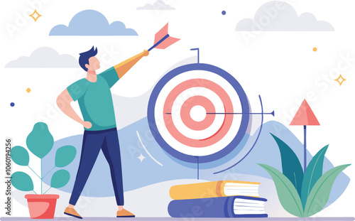 Business people running to target, looking through telescope, vector flat style design illustration. Reach the target, path to success, goal achievement, business vision.