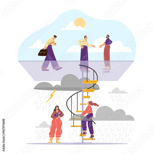 Huge star and tiny characters happy business people getting rewards gold cup, medal, vector illustration. Corporate financial success, successful team winners concept for web banner, website page etc.