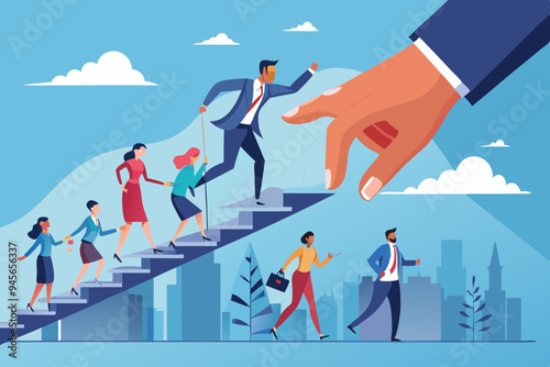 Successful business growth concept vector illustration. Bussinessman clmbing up.