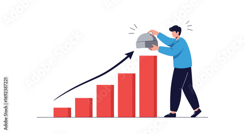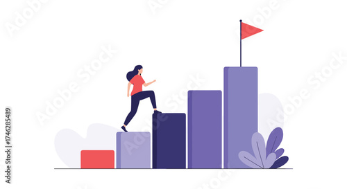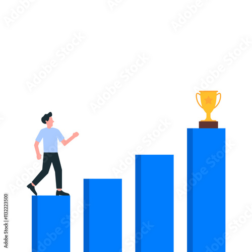 Successful business people vector flat illustration isolated on white background. Businessman characters superhero, winner celebrating success with award, climbing up bar chart, planning to reach goal