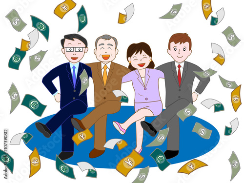 Successful businessman drinking cocktail and taking a rest on a bunch of money. Business vector concept illustration in cartoon style.