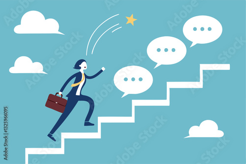 Businessman walking up stairway to target, vector layered paper cut style illustration. Path to success, business journey, successful goal achievement, career advancement, challenge concept.