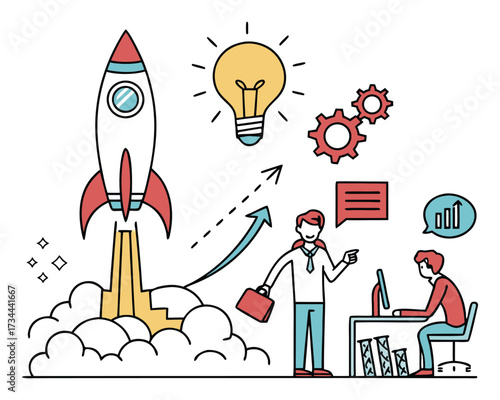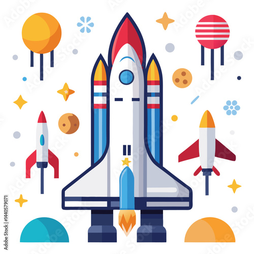 Successful school start vector illustration with pencil rockets flying into space, abc letters. Back to school concept.