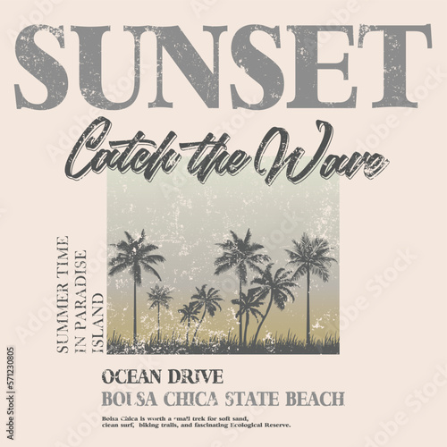Summer beach party grunge typography poster design template, vector illustration in retro style. Night club disco party concept for banner, flyer.