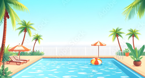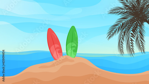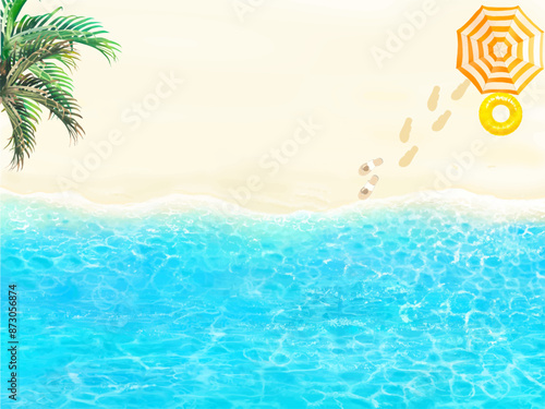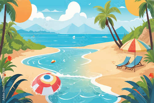Summer beach top view cartoon vector illustration. Nature paradise, touristic seaside luxury resort and marine travel