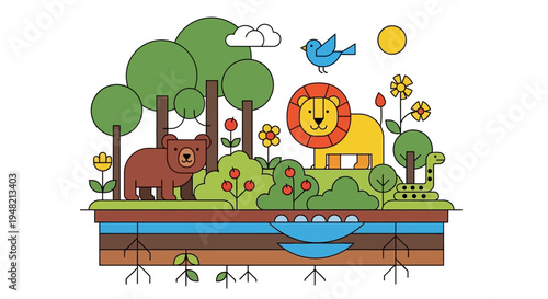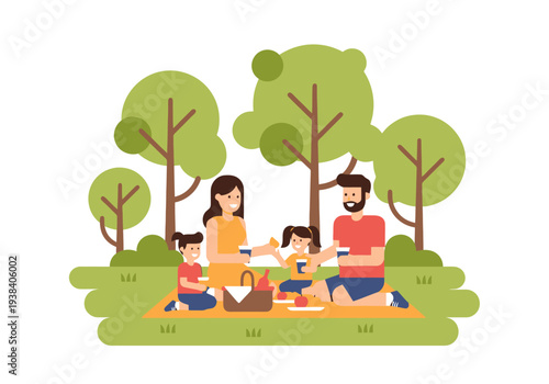 Summer picnic. Happy girl lying on blanket and using mobile phone, flat vector illustration. Picnic basket. Young people lifestyles. Social media and smart phone addiction.