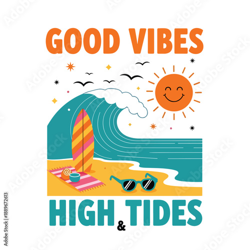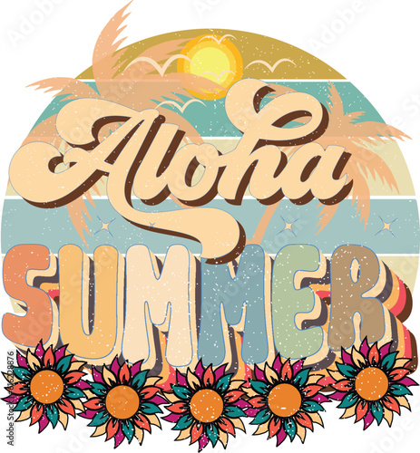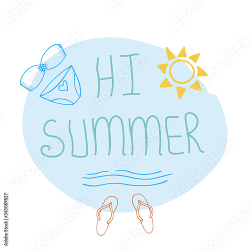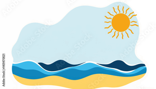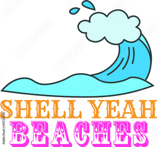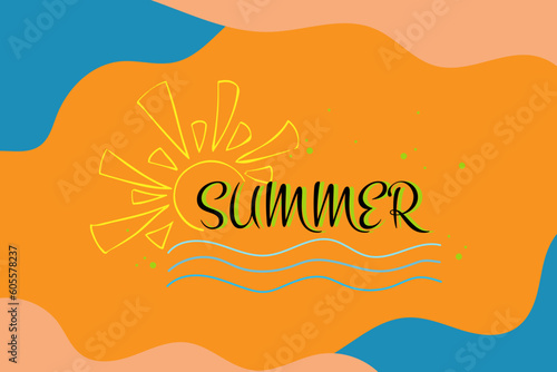 Summer creative hand lettering typography, vector illustration in paper art modern craft style. Summer tropical beach composition with paper cut ocean waves, palm tree, sun, starfish and seagulls.