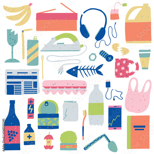 Travel infographic, vector flat isolated illustration. Summer beach vacation accessories. Documents, money, clothes, footwear, medicine, gadgets and cosmetics. Summertime and travel planning concept.