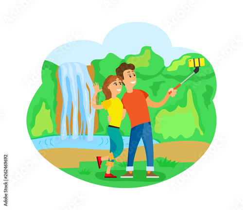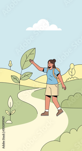 Summer vacation landing page design, website banner template set, flat vector illustration. Tourist with backpack looking at the map. Hiking, trekking, summer travel, outdoor adventure.