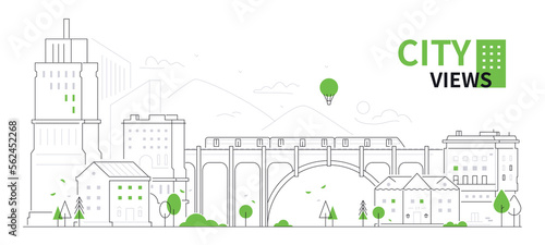 Summer vector illustration. Modern thin line art flat style design element with summer symbols, icons for website banners and printed materials.