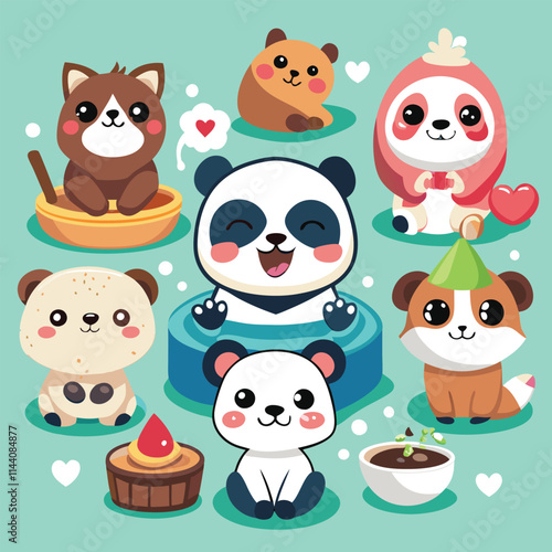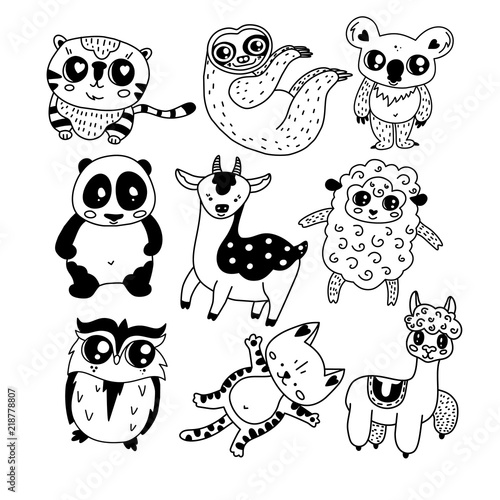 Summer seamless pattern. Vector hand drawn raccoons, pineapples and slices of watermelon.