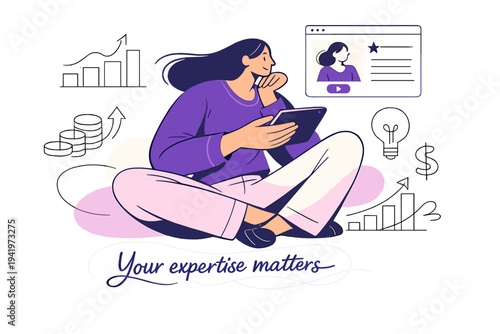 Woman riding water scooter, vector flat illustration isolated on white background. Summer water sport concept for web banner, website page etc.