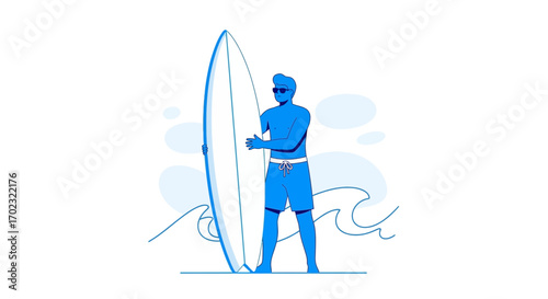 People enjoying extreme summer water sports, vector flat illustration isolated on white background. Stand up paddle boarding, windsurfing, water scooter, snorkeling, surfing. Summer beach activities.